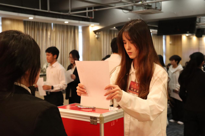 大会筹备工作严谨有序,工作人员各司其职,对外院团委第六届委员会委员候选人名单进行讨论。经过投票、计票环节,在监票人的监督下,代表们以无记名投票方式选举产生了第六届外院团委委员:龙俏颖、洪柔冰、曾晶、吴文利、唐嘉敏、伍筱丹、何抒恒、罗祺、张思韵、成银仙、谭淑倩、吴晓晴、周玉婷、林婷婷、周诗雯。