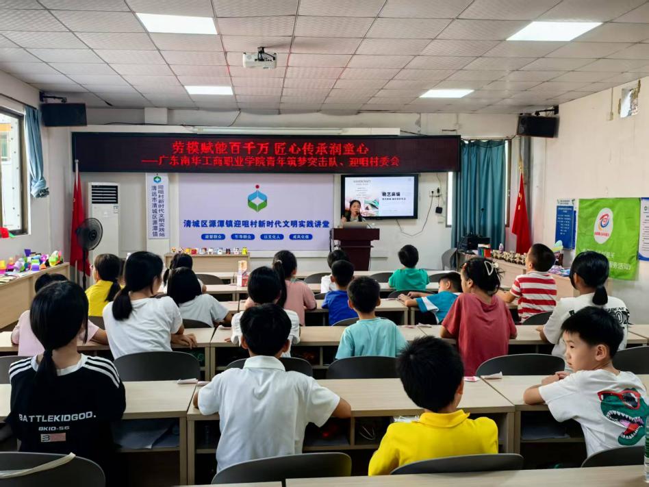 广东省劳模陈晓懿为迎咀村的孩子们讲课