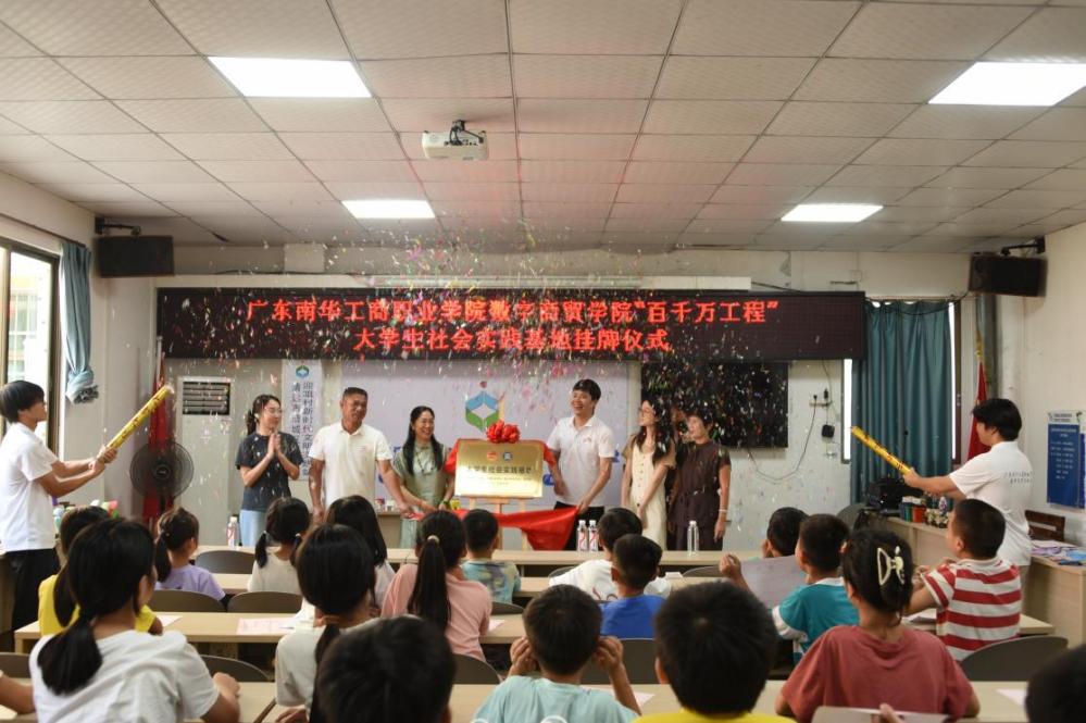 为促进高校人才资源与乡村发展需求的长效对接,实践期间,广东南华工商职业学院数字商贸学院与清远市源潭镇迎咀村共建“大学生社会实践基地”。揭牌仪式邀请广东省劳动模范、广东省三八红旗手、晓懿麻编书院院长陈晓懿及源潭镇团委副书记陆文苑共同见证,标志着校地合作迈入新阶段。