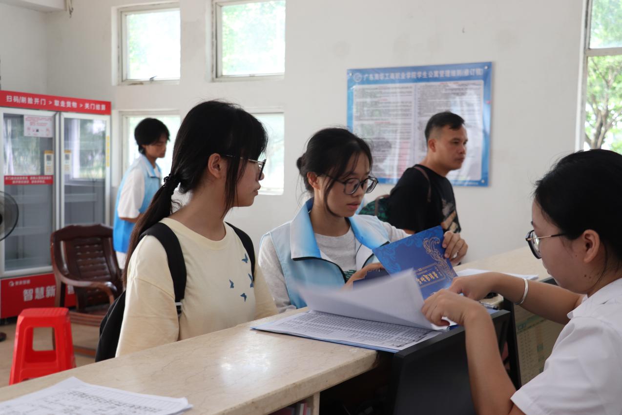 广东省总工会一级巡视员张振飚一行来到学院迎新现场,亲切问候现场志愿者,深入了解迎新工作落实情况、学生报到、专业产教融合等情况,为学院工作提供了坚强的指导。