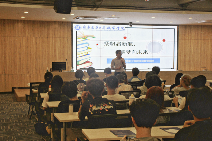 9月7日,数字商贸学院在图书馆报告厅举办“逐梦本科,筑梦未来”专升本专题活动,面向2025级新生开展政策解读与经验分享。继续教育学院教师为新生系统梳理专升本报考流程和政策要点。