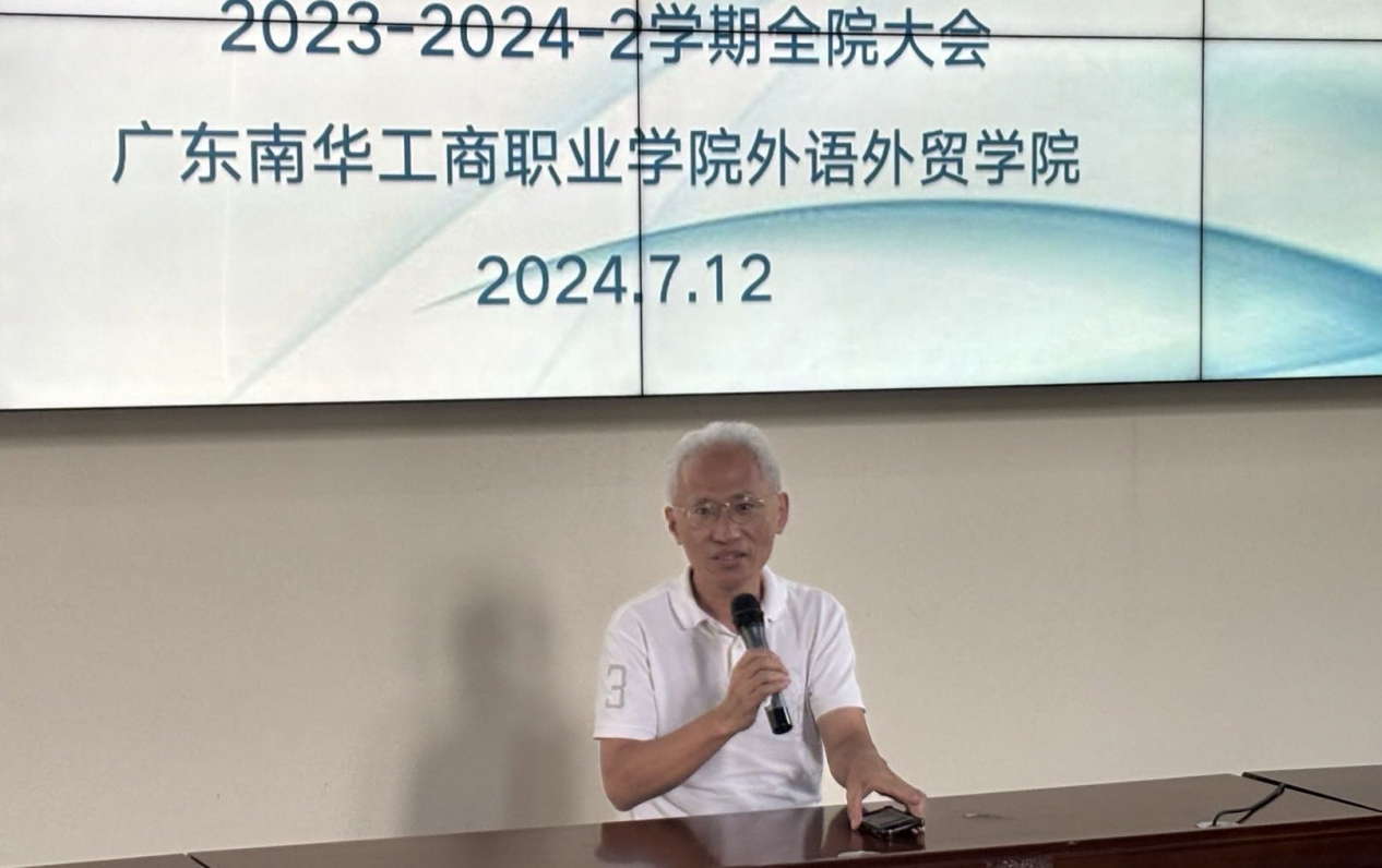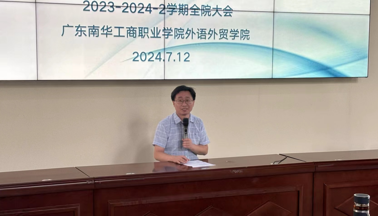 7月12日,外语外贸学院(下称“外院”)在清远校区教学楼101召开2023-2024-2学期全院大会。