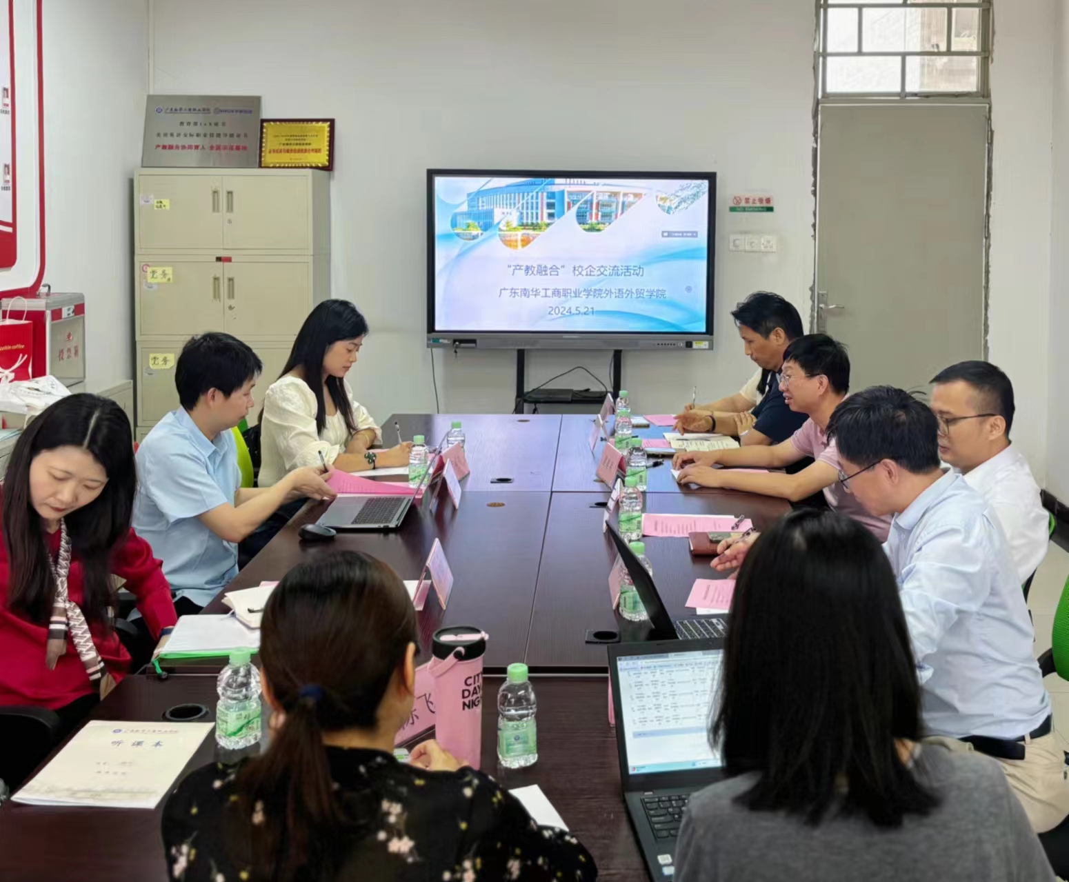 为促进人才培养与就业,2024年5月21日下午,外语外贸学院在清远校区教学楼207开展以“‘产教融合’促就业,‘职’引未来谱新篇”为主题的交流座谈会。学校党委委员、学生工作部部长余喜文,学院党总支书记夏建兵,国际经济与贸易专业负责人陈春慧,商务英语专业负责人余伟琼,现代物流管理专业负责人高美荷,关务与外贸服务专业负责人王云,教师代表陈飞、邓雨梦与企业代表福建亿学教育科技集团庄明星、广州卡瑞欧教育科技有限公司方翠婷出席本次会议。