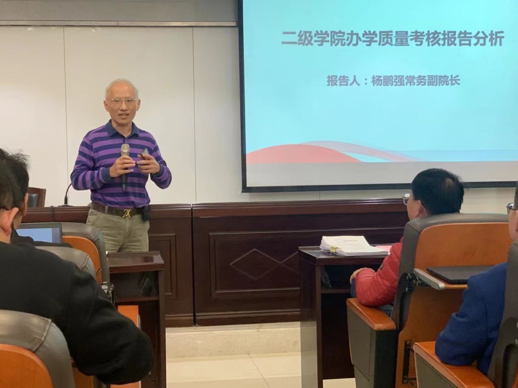 杨鹏强常务副院长作学院2023年度办学质量考核报告解读,关注发展需求,探讨努力方向,为学院提高教育办学质量精准把脉,为新一年学院发展奠定基础。