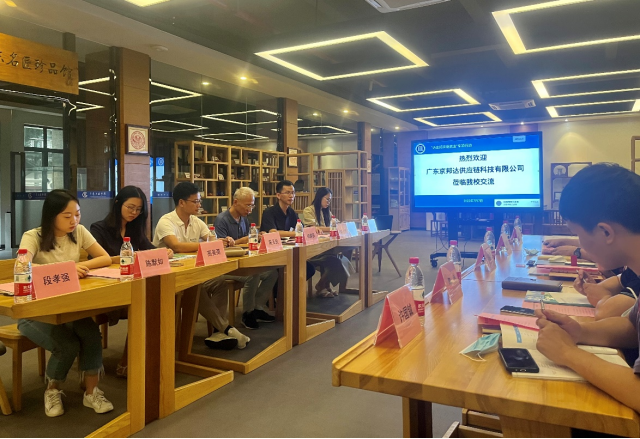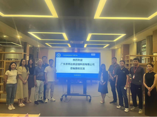 为开拓增量岗位,促进毕业生就业,贯彻落实学校访企拓岗专项活动工作方案的要求,坚持实地走访为主“走出去”和“请进来”相结合,2022年7月7日下午,广东京邦达供应链科技有限公司(下简称“京东物流”)校企项目负责人马丽华、华南区服务业务负责人陈林、黄埔园区人事负责人朴哲敏、华南区服务业务对接人袁建梅和园区人事负责人许国铖一行人来到我校天河校区洽谈校企合作事宜。广东工匠学院执行副院长黄玉良、外语外贸学院常务副院长杨鹏强、学生工作处副处长李小宁、现代物流管理专业负责人高美荷、毕业生就业指导中心教研室主任林咏君、教务处产教融合办公室工作人员陈默如和毕业生就业指导中心干事段孝强等人热情接待了马丽华负责人一行人,双方就校企合作、人才培养、学生实习、就业招聘和双师培训等事宜展开了一系列的探讨。