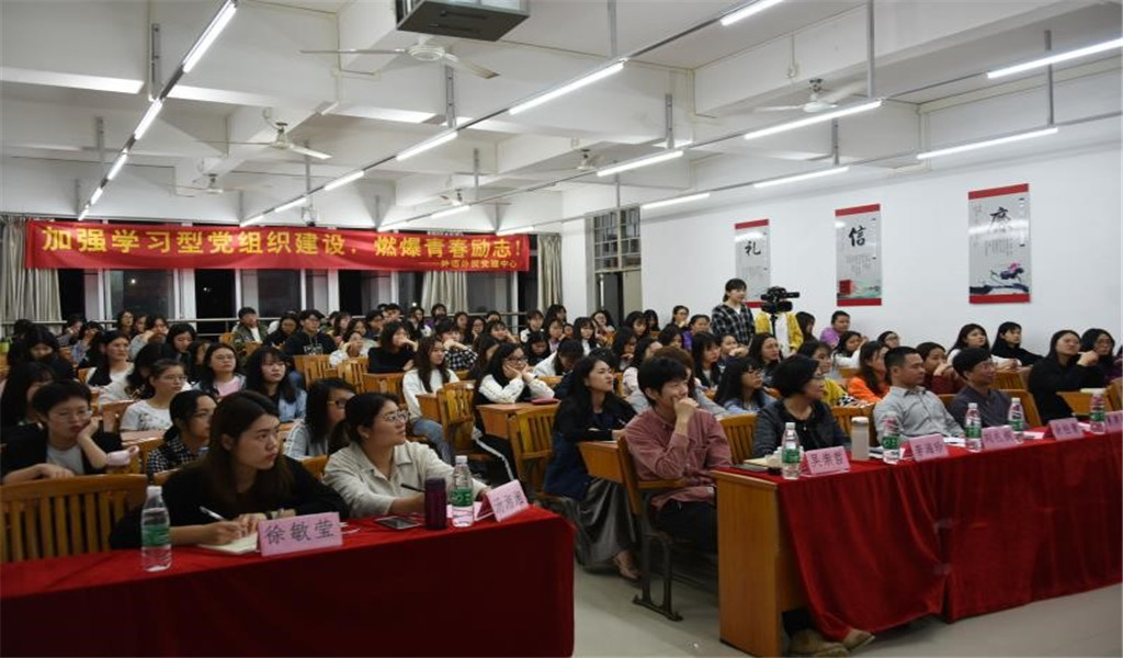 同时,此次讲座由外语外贸学院学生党建中心协办,并组织17、18级的入党积极分子前来参加,希望通过加强学习型党组织建设,使同学们从学习能力、组织能力、协调能力等全方位发展自身,进一步坚定跟党走中国特色社会主义道路的理想信念!