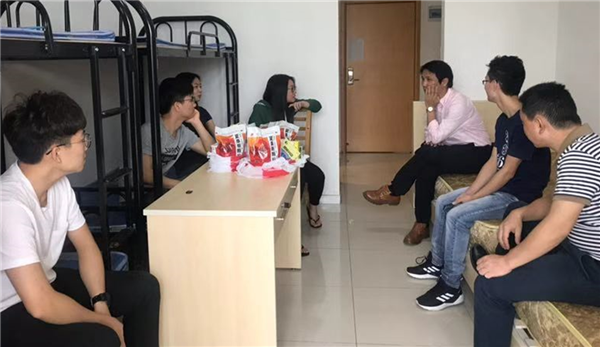 11月3日实习启动当天,专业负责人和辅导员全程组织同学,并陪同学生到苏宁的实习基地,妥善安排学生的住宿,并巡视了每间学生的宿舍,关心学生的起居与生活。接下来实习的每一天,实习指导小组都安排2-3名专业老师到实习基地看望学生,及时了解学生的实习动态,学生生病,老师特别买药送到学生宿舍。