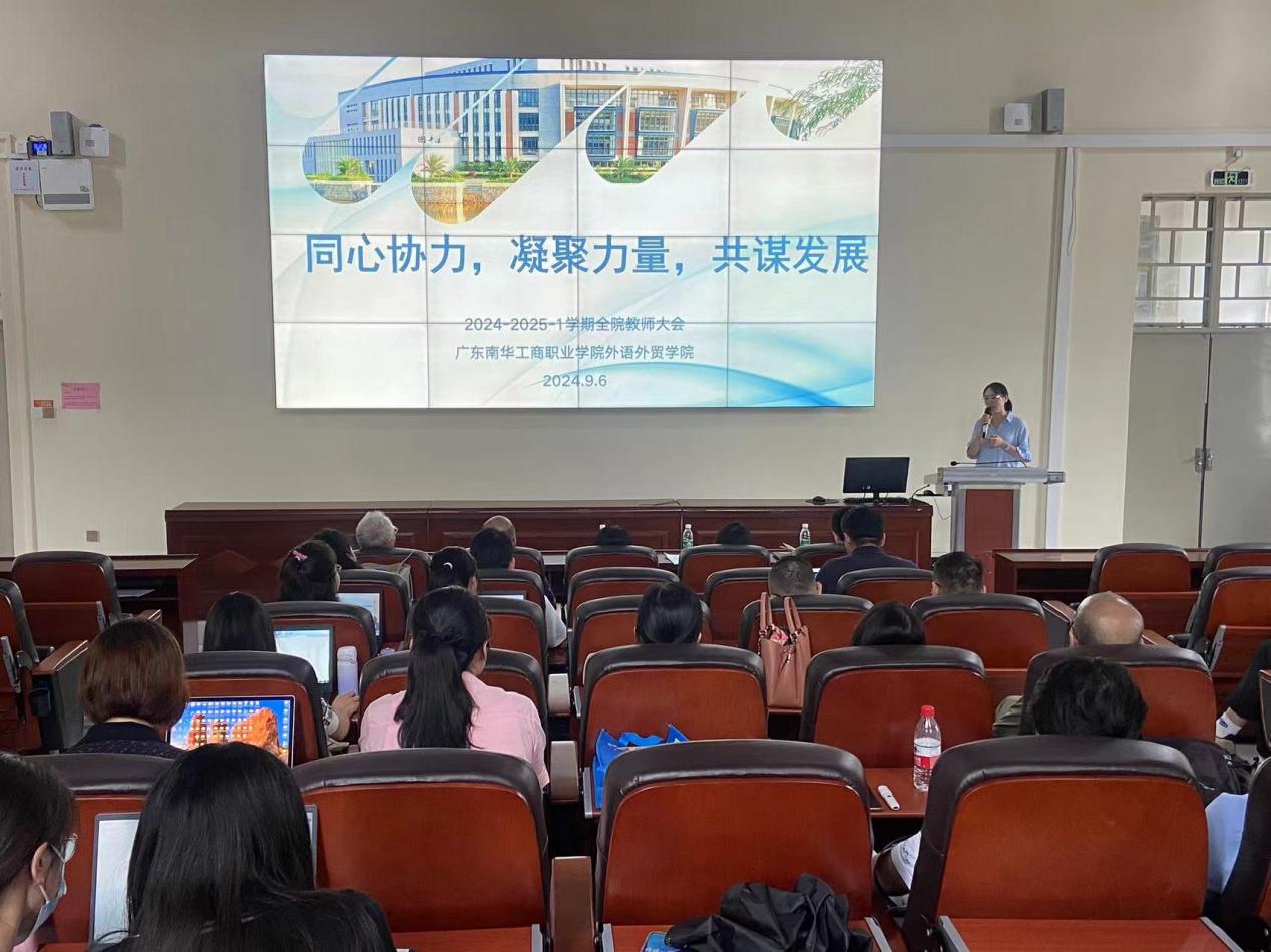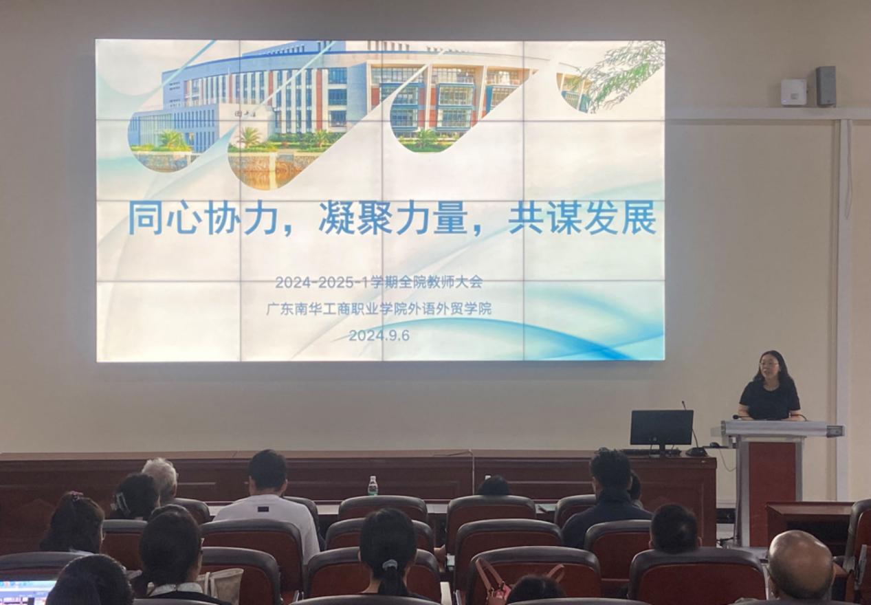 9月6日,外语外贸学院(下简称“外院”)在清远校区教学楼101室召开2024-2025-1学期全院教师大会,部署下半年重点任务。