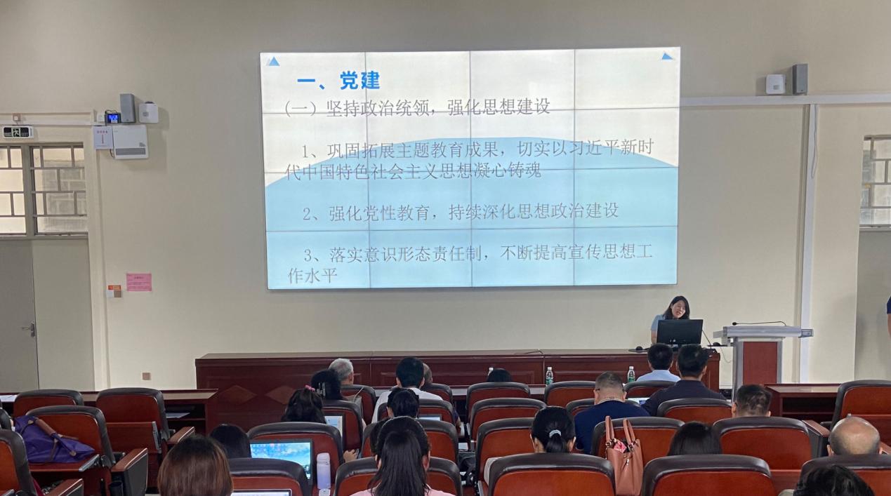 外院党总支部副书记刘爱玲明确了下半年党建、学生工作重点。她提出,在党建方面,要坚持政治统领,强化思想建设;加强组织建设,锻造坚强战斗堡垒;抓好队伍建设,激发教职工干事活力;深化作风建设,建强战斗堡垒。在学生工作方面,实施“铸魂、赋能、固基、绽放”计划,促进学生全面发展。