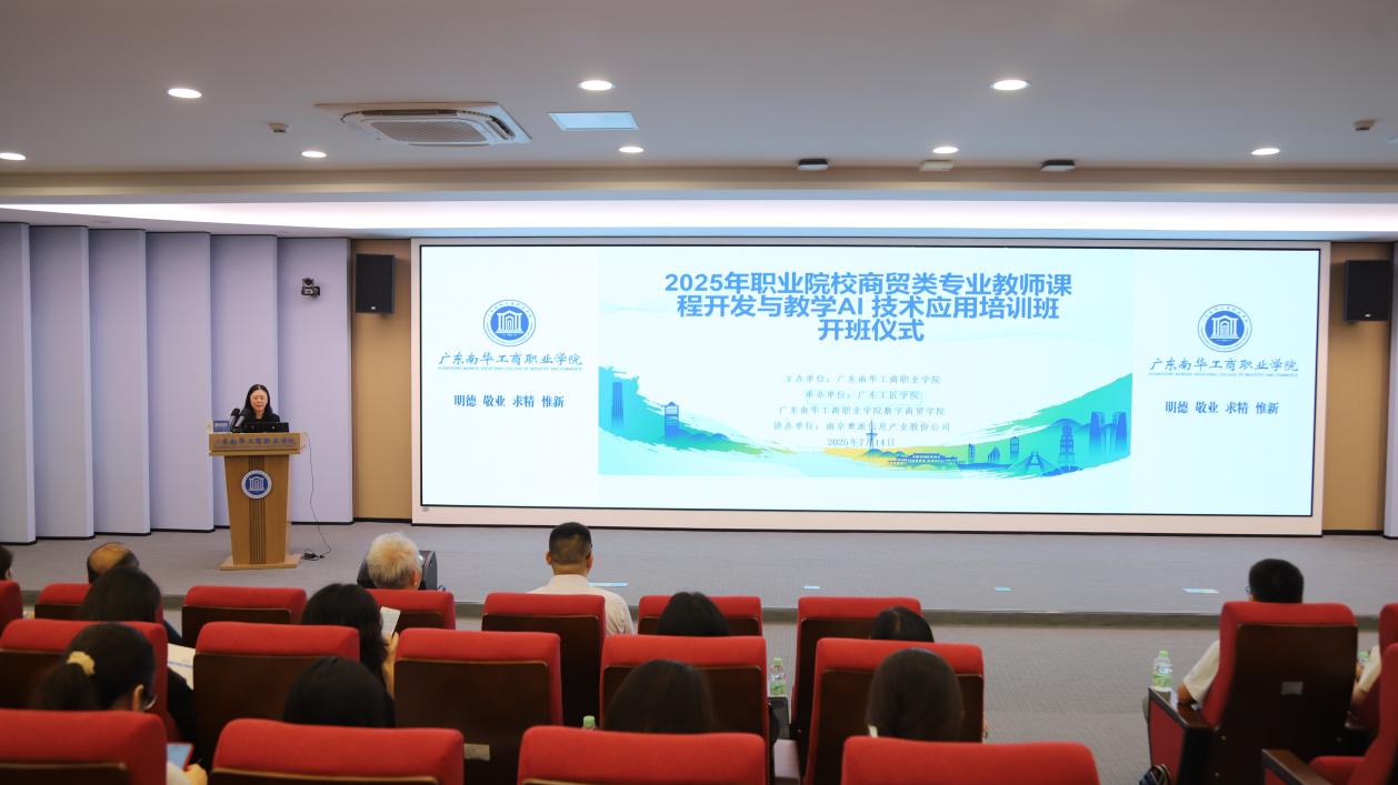 7月14日上午,由数字商贸学院、广东工匠学院承办的“2025年第一期职业院校商贸类专业教师课程开发与教学AI技术应用研修班”在我校清远校区第2实训楼202顺利开班,吸引全省高职院校60多名骨干教师参训。