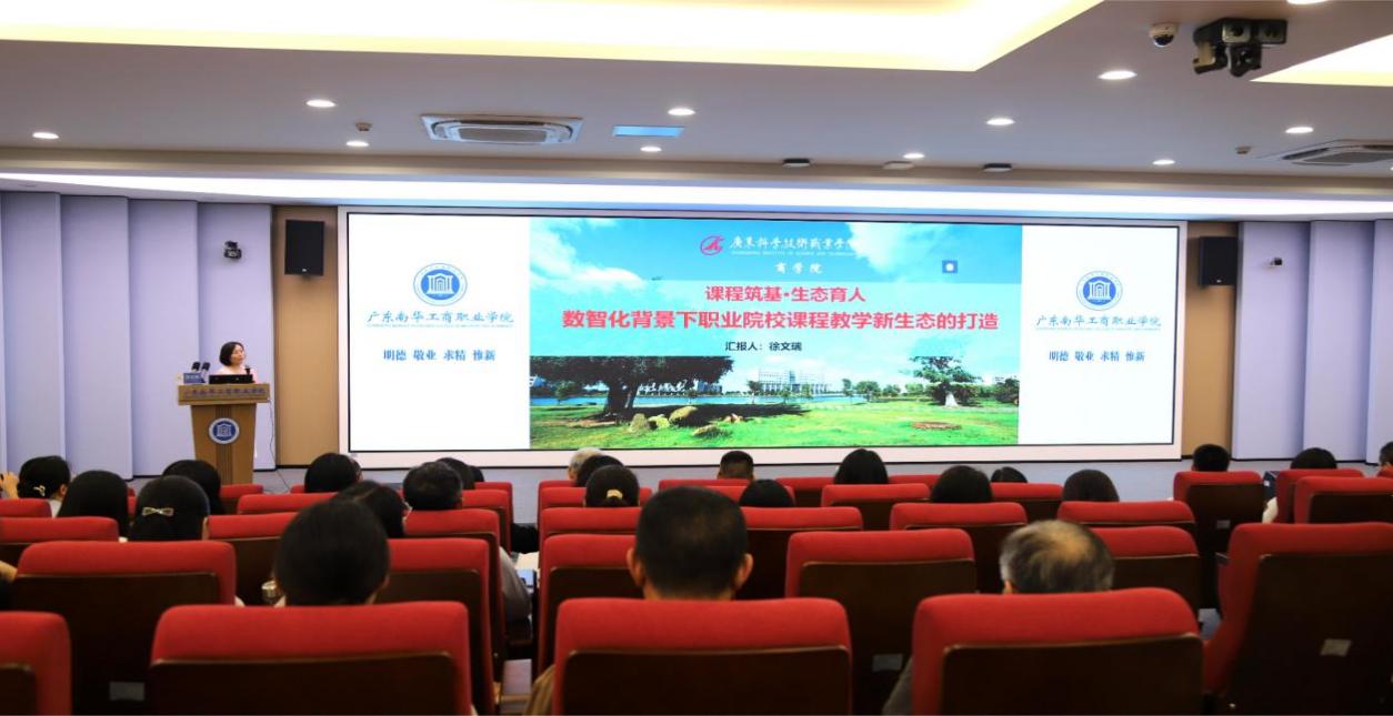 开班仪式结束后,培训随即进入首堂课程。由广东科学技术职业学院徐文瑞副教授作《职业院校数智化课程建设的探索与实践》专题讲座。徐文瑞结合AI技术运用,深度拆解课程开发的底层逻辑、教学设计的创新路径、教学成果的申报转化,进行电子商务课程教学新生态构建解析。讲座结束后,参训教师就人培方案的制定、课程的开发等问题进行交流。