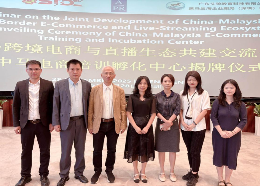 当天,学院教师团队受邀参加中马跨境电商合作签约仪式,共同见证“中马电商培训孵化中心”揭牌。该中心将聚焦AI应用、TikTok运营、马来语合规等方向开展课程建设,与数字商贸学院的专业发展方向高度契合。
