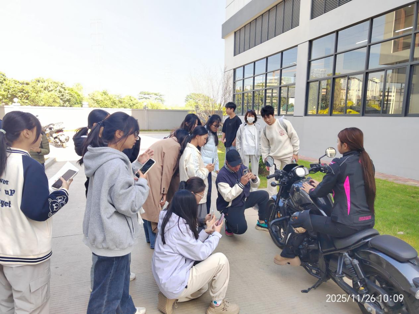 广东杜汉公司经理林政同、肖初华对师生表示热烈欢迎,并详细介绍了公司业务布局与发展模式。摄影剪辑师张建波、陈春雁围绕“手机拍摄与相机拍摄的差异与侧重点”“拍摄流程与关键注意事项”等内容进行了专业讲解与现场演示。公司模特李逸等人也积极参与互动,为师生呈现真实工作场景。
