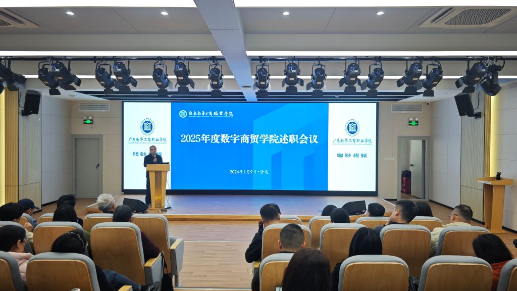 为全面总结2025年学院工作成效,明确新一年发展方向,2026年1月9日,数字商贸学院在第二实训楼204报告厅召开2025年度年终述职大会。全体教职工齐聚一堂,细数耕耘收获,共绘发展蓝图。会议由学院党政办主任张国林主持。