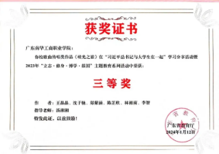 2023年"立志·修身·博学·报国"主题教育系列活动歌曲传唱类广东省三等奖;