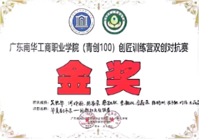 2021-2022学年,获广东南华工商职业学院(青创100)创匠训练营双创对抗赛金奖;