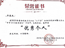 2022-2023学年,获广东南华工商职业学院暑期科技文化卫生“三下乡”社会实践活动暨“百千万工程突击队”行动“优秀个人”称号;