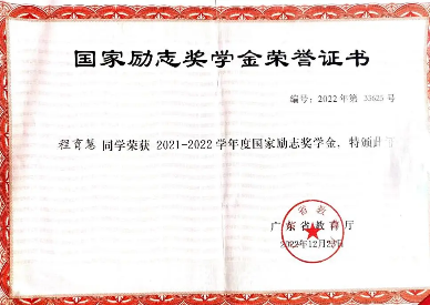 2021-2022学年,获国家励志奖学金;