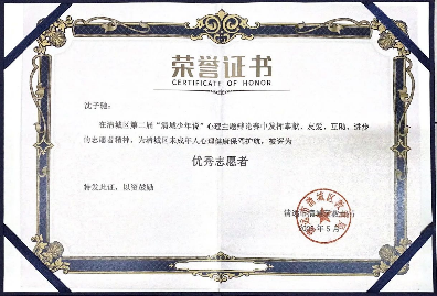2022-2023学年,获清城区第二届“清城少年说”心理主题辩论赛“优秀志愿者”称号;