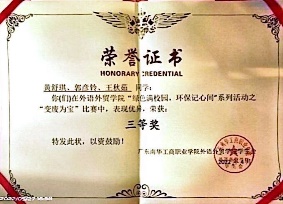 2022-2023学年,获第十七届“挑战杯”大学生课外学术科技作品竞赛红色专项赛广东南华工商职业学院二等奖。