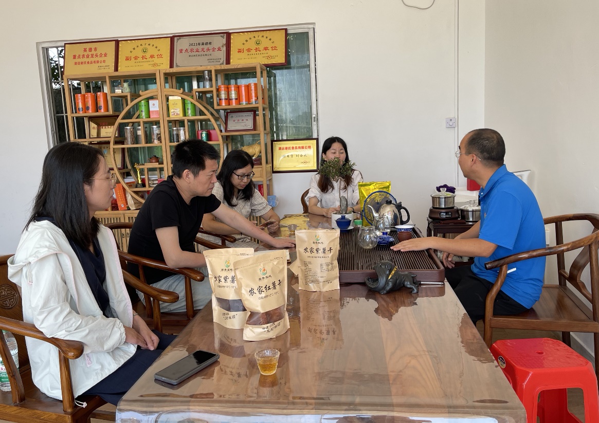 9月28日,外语外贸学院(下称“外院”)教师一行联合清远英德市人社局人才服务驿站凌燕主管、前海头狼创客(深圳)创业投资基金管理有限公司朱加宝,实地走访了位于清远市英德市的薯香基地、乐品红茶、广九豆工坊三家农产品企业,探讨电商助力清远五大百亿产业合作模式,落实助农创收高质量发展之路。