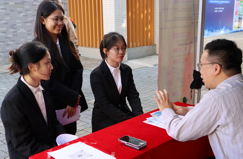 11月26日下午,外语外贸学院(下称“外院”)举办2025届毕业生专场校园招聘会,珠海长隆投资发展有限公司、清远万达广场商业管理有限公司、清远市广硕鞋业有限公司等16家企业来校招聘。
