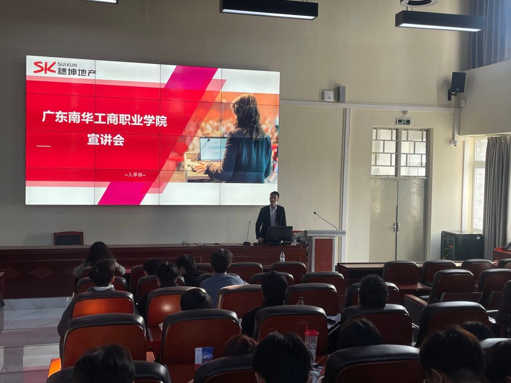 11月26日,外语外贸学院(下称“外院”)在清远校区一教101开展穗坤地产校园招聘讲会,为学生们提供更广的就业视野和职业发展机会。