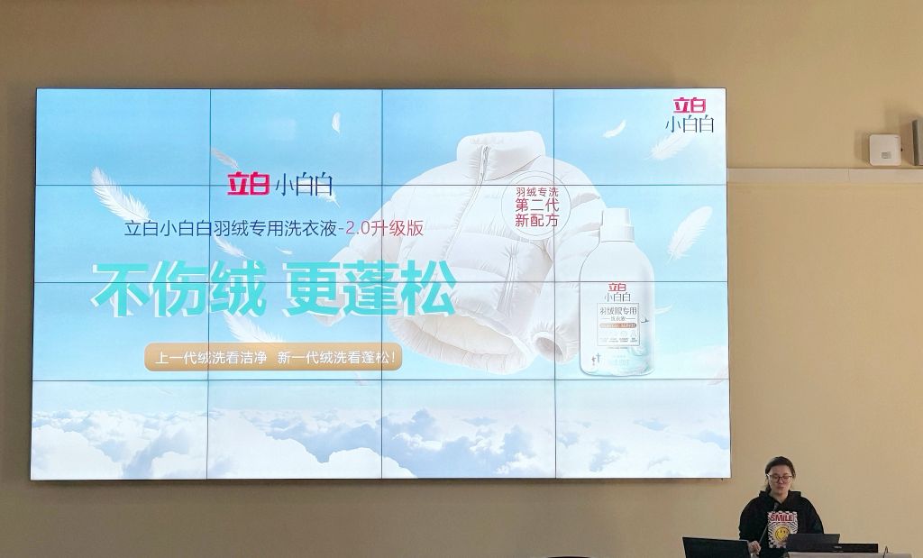在随后进行的首场企业授课环节,立白科技集团培训经理黄骏华及品牌经理黄家如为学子们带来了精彩分享。品牌经理黄家如系统讲解了短视频创作的逻辑与方法,建议同学们要精准定位目标受众,围绕产品核心卖点,通过场景化展示、使用教程等形式打造优质内容。她还现场展示了多个成功案例,为同学们接下来的创作实践提供了参考。