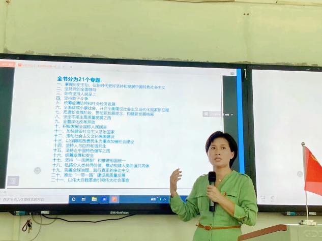 赵玲霞老师开宗明义,带领我们进一步加深对中国之路的深刻理解,让同学们对在新时代新征程上团结奋斗,勇毅前行的重要意义有了自己的见解;加深了对中国之治的深刻理解,准确把握中国之治背后的制度密码;加深了对中国之理的深刻理解,对续写马克思主义中国化时代化新篇章具有重要意义。其次,带领同学们深入学习领会《习近平谈治国理政》第四卷的主要内容与核心要义。结合助学政策、专业发展、家乡变化、分别从十个专题讲解,如何贯彻落实新时代党的基本路线,如何坚持不懈把全面从严治党向纵深推进,坚定不移推进中国现代化,加快社会主义法治国家建设,扎实推动共同富裕,社会主义文化强国建设的重要性。