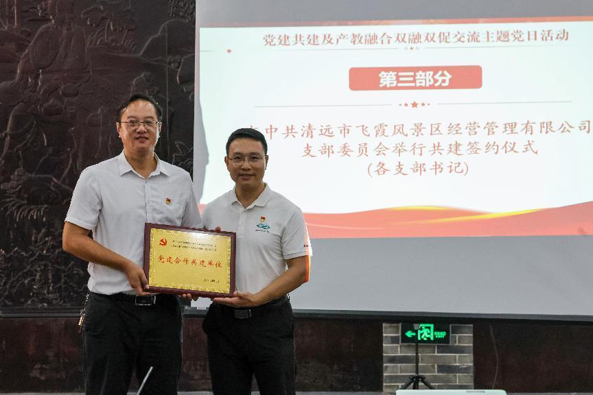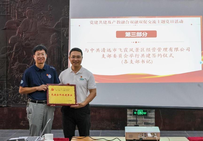学前教育学院支部和文化旅游学院支部分别与清远市飞霞风景区经营管理有限公司党支部签订了共建协议,标志着双方在党建与业务深度融合方面迈出了新的步伐,更预示着双方将携手共进,为传承传统文化、融合式育人、发扬清远旅游事业贡献更大的力量。
