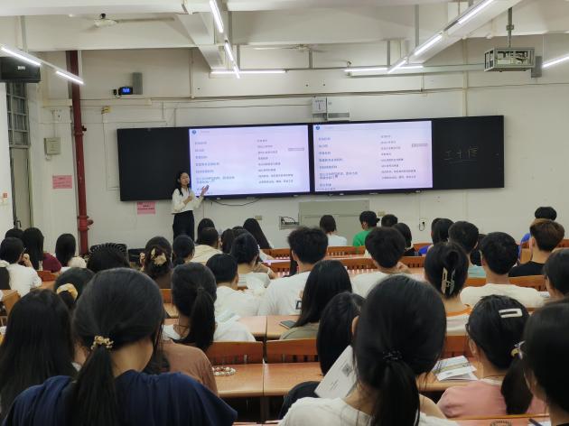 辅导员胡思敏为新生开展了心理健康讲座,通过互动游戏、案例分析等方式,帮助新生缓解初入大学的紧张情绪,学会自我调节和寻求帮助。