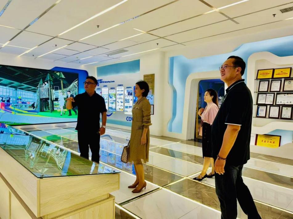 赵玲霞一行参观了牧童集团展示厅及生产车间,双方就学前教师企业实践、学生见习及就业渠道等校企合作内容进行了深入探讨。赵玲霞表达了与企业深度合作的意愿。