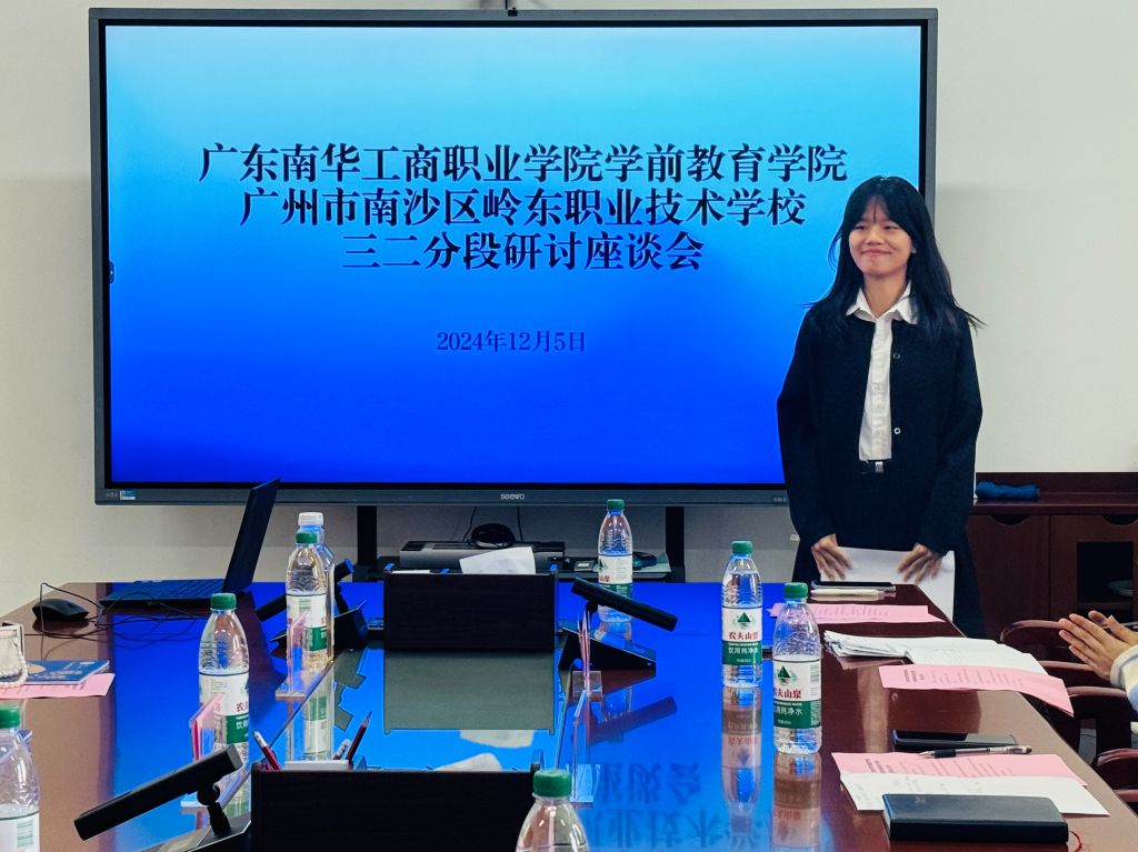 学前专业群负责人李婵、辅导员胡思敏、教学秘书陈庭,南沙岭东2023年级级长郑佳凡、2024级幼儿保育2班班主任陈奕芳、幼儿保育专业教师邓雪姗,2024级学生代表何泳珊、赵凤林、周子怡、文姿参加交流座谈会。