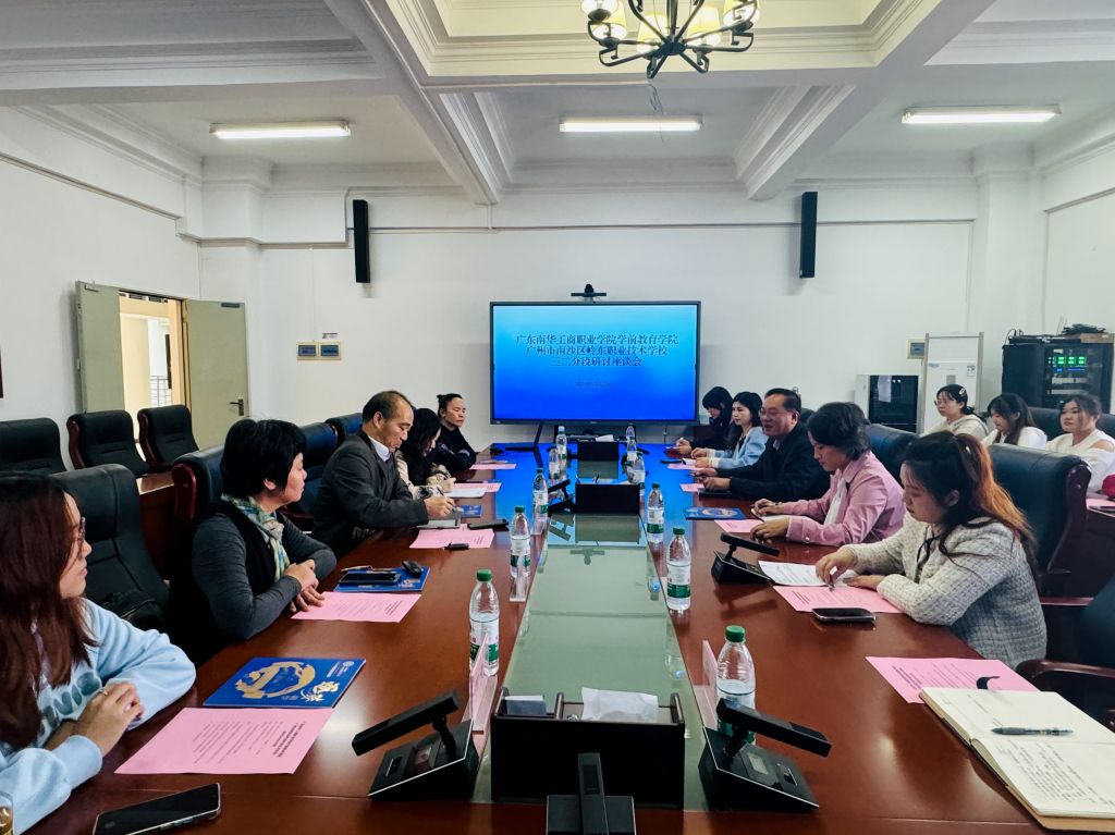 12月5日,广州市南沙区岭东职业技术学校(以下简称:南沙岭东)到我校开展三二分段交流合作。南沙岭东教务教研科主任潘汉荣,学前教育学院(以下简称:学前)党总支部许典榕、副院长赵玲霞参加交流座谈。