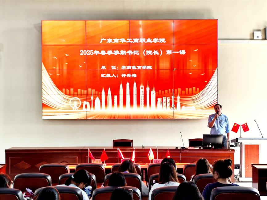 3月25日,广东南华工商职业学院学前教育学院以“聚焦两会精神 赋能幼教未来”为主题,开展2025年春季学期书记、院长第一堂思政课。党总支书记许典榕紧扣2025年全国两会精神,带领学院师生在政策解读与实践中践行新时代青年的使命担当。