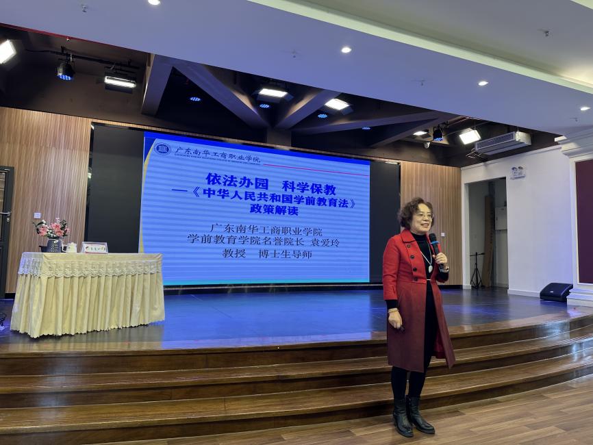 4月1日上午,学校联合斗门区教育局组织全区幼儿园园长、各镇(街道)幼教专干等115人共赴斗门区第二幼儿园聆听由袁爱玲主讲的“依法办园 科学保教——《中华人民共和国学前教育法》政策解读”专题讲座。讲座围绕《学前教育法》的立法背景、核心条款及实施要点,结合典型案例做系统阐释。同时聚焦学前教育热点难点问题,如幼小衔接、特殊儿童与普通儿童的共融发展,提出科学保教意见和建议。