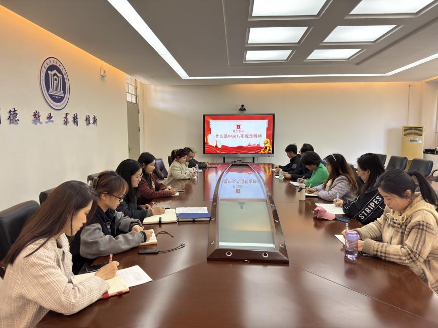 会议强调,中央八项规定是党中央加强作风建设的重要举措,是全体党员干部必须长期坚持的行为准则。全体党员、教师要深刻领会文件精神和时代内涵,将其作为锤炼党性、提升政治站位的“必修课”,切实增强纪律意识和规矩意识,坚决反对决形式主义、官僚主义、享乐主义和奢靡之风,以实际行动践行党的优良传统,为学院发展营造风清气正的良好环境。