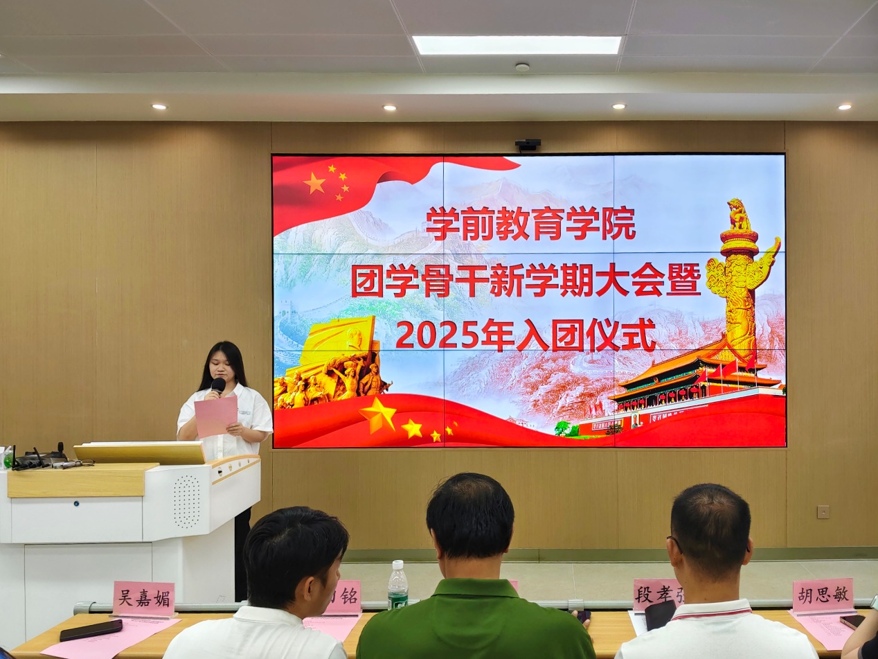 活动在激昂的中国共产主义青年团团歌声中落下帷幕。此次团学骨干大会暨入团仪式不仅明确了新学期团学工作的方向,凝聚了骨干力量,更增强了新团员的光荣感与责任感。学院全体团学骨干和新团员们将以此次会议为新起点,牢记职责使命,以创新思维和实干精神,服务同学成长,助力学院发展,在青春的赛道上奋力奔跑,为实现中华民族伟大复兴贡献学前青年的智慧和力量。