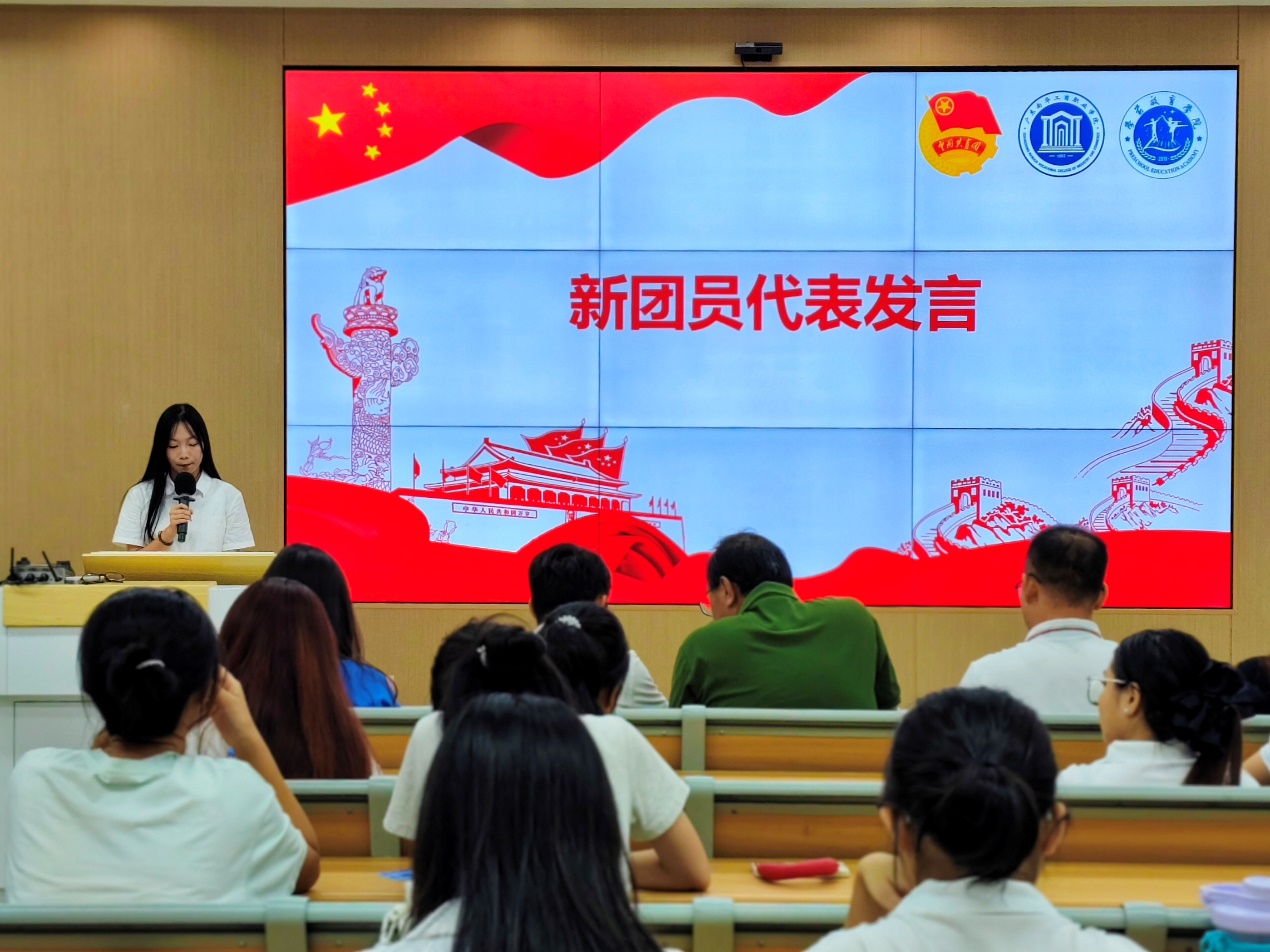 新团员代表张敏怡在发言中表达了加入团组织的激动与自豪,并表示将以此为新的起点,坚定信念、勤奋学习、严守纪律、勇于实践,努力成长为一名合格的共青团员,不负时代与韶华。