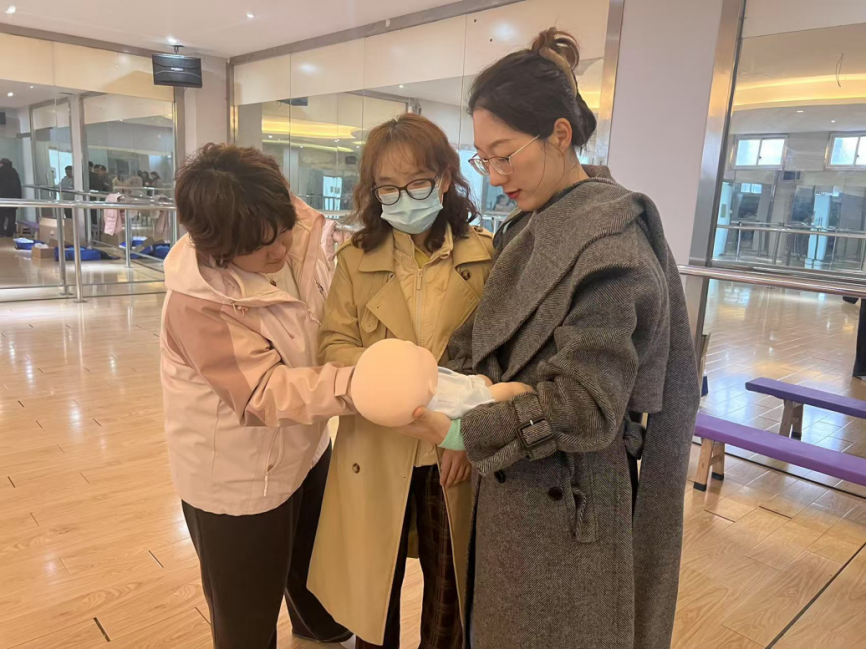 活动中,曾丽娜老师向与会教师详细讲解了各模型的功能与教学价值:智能心肺复苏模型采用全仿真人体结构设计,可实时监测操作规范性,有效提升急救技能训练的科学性;仿真硅胶婴儿模型触感逼真、关节灵活,可模拟多种抚触与被动操场景,助力婴幼儿护理教学;仿真智能婴儿模型搭载互动程序与连续照料系统,能够模拟真实生理需求,培养学生回应性照护能力。