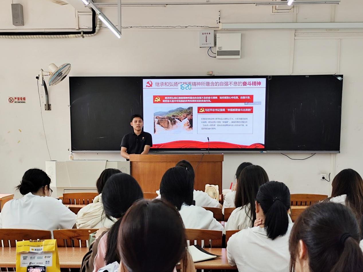 精神解读环节,李田铭从四个维度解读了红旗渠精神的时代内涵。他表示:“红旗渠精神是中国共产党人精神谱系的璀璨明珠,其核心是忠诚为民的奉献精神、自强不息的奋斗精神、勇于开拓的创新精神、清正廉洁的公仆精神。”,并结合习近平总书记“幸福都是奋斗出来的”重要论述,希望学院学子能够赓续红色血脉,以红旗渠建设者为榜样,将红旗渠精神转化为学习动力,锤炼敬业精神、坚守为民初心、践行务实作风,在班级建设、志愿服务中发挥先锋模范作用,以实际行动践行‘为党育人、为国育才’的使命。