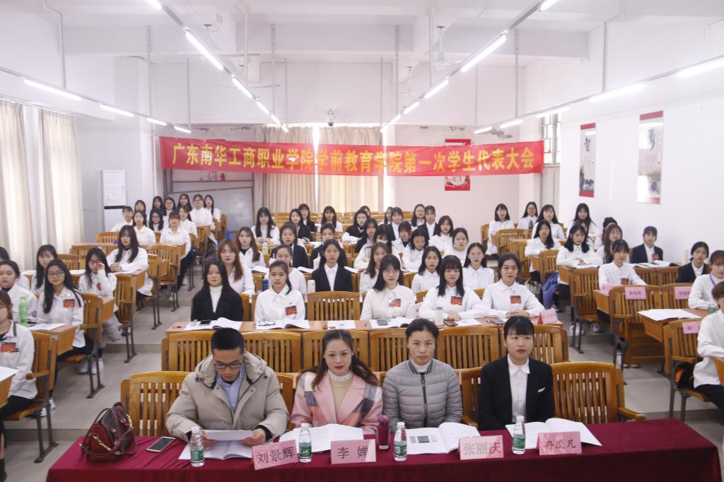 2020年12月18日下午2点广东南华工商职业学院学前教育学院第一届学生代表大会在教学楼105教室顺利召开。出席本次大会的人员有学前教育学院党支部副书记李婵、学前教育学院党支部办公室主任张丽庆、学前教育学院团委书记刘景辉、校学生会代表冉洨凡以及19、20级的学生代表们,共计100余人。