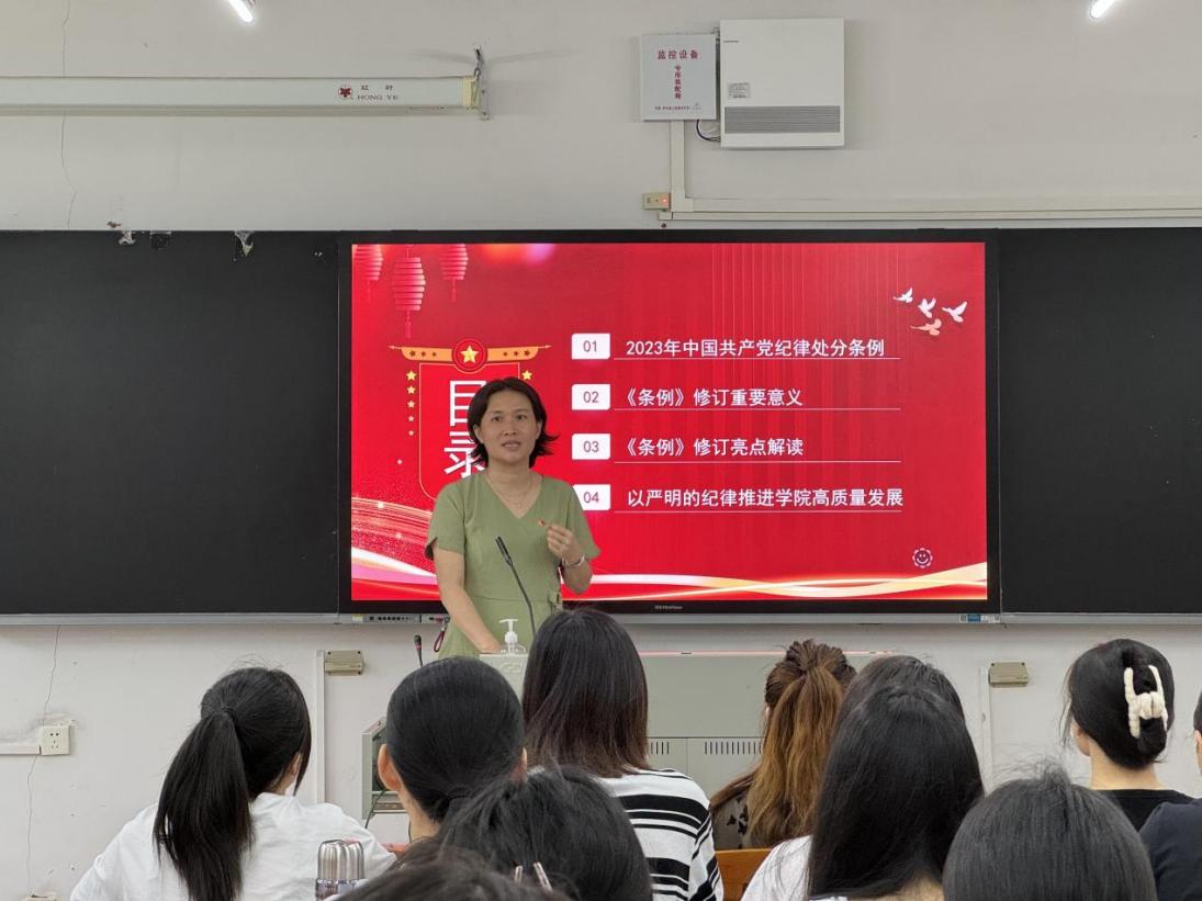 赵玲霞在讲解过程中结合学院实际情况,说明了严明纪律对推进学院高质量发展的重要性,学院的发展离不开党的坚强领导,离不开严明的纪律保障。全院师生要深入学习贯彻条例精神,将严明纪律贯穿于学院工作的全过程,以严明的纪律推动学院各项工作的高质量发展。