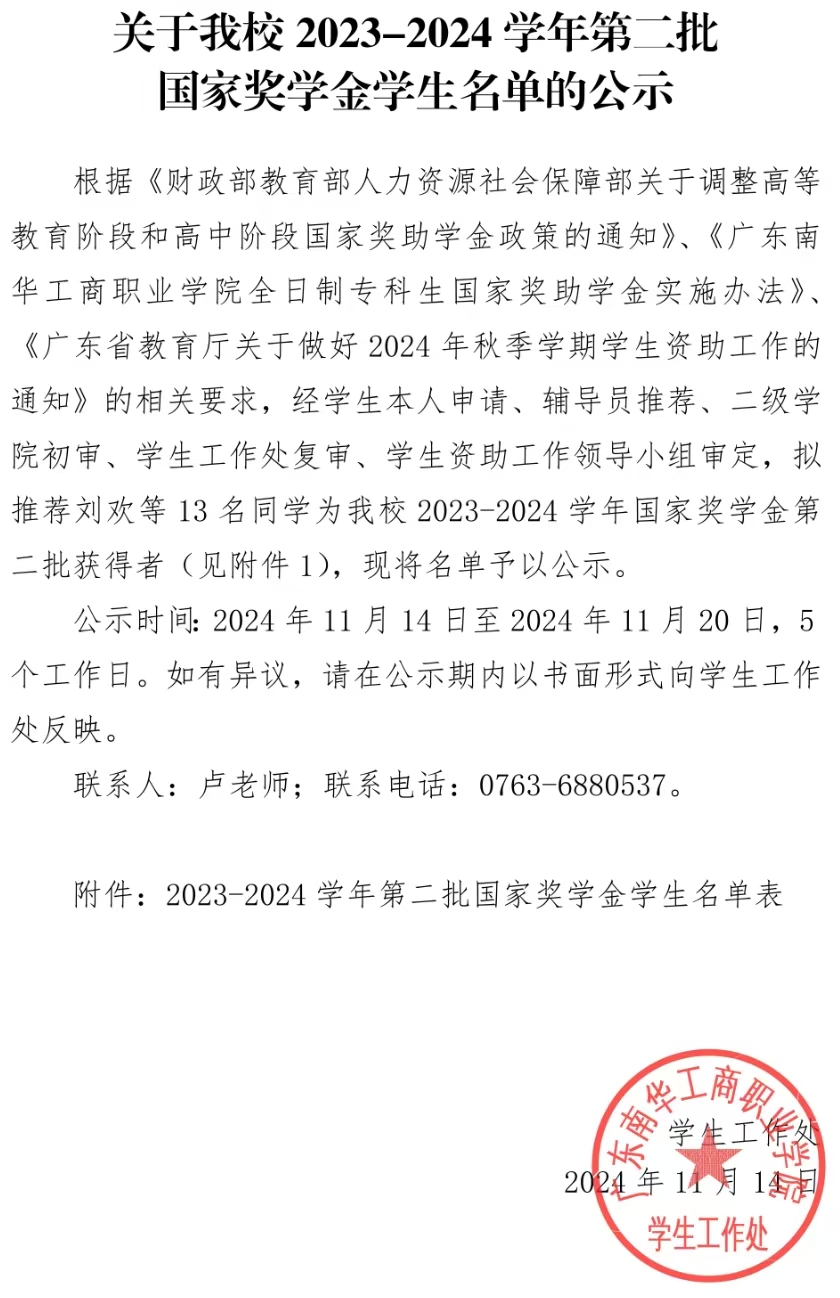 下一条: 关于我校 2023-2024 学年国家奖学金、国家励志奖学金学生名单的公示