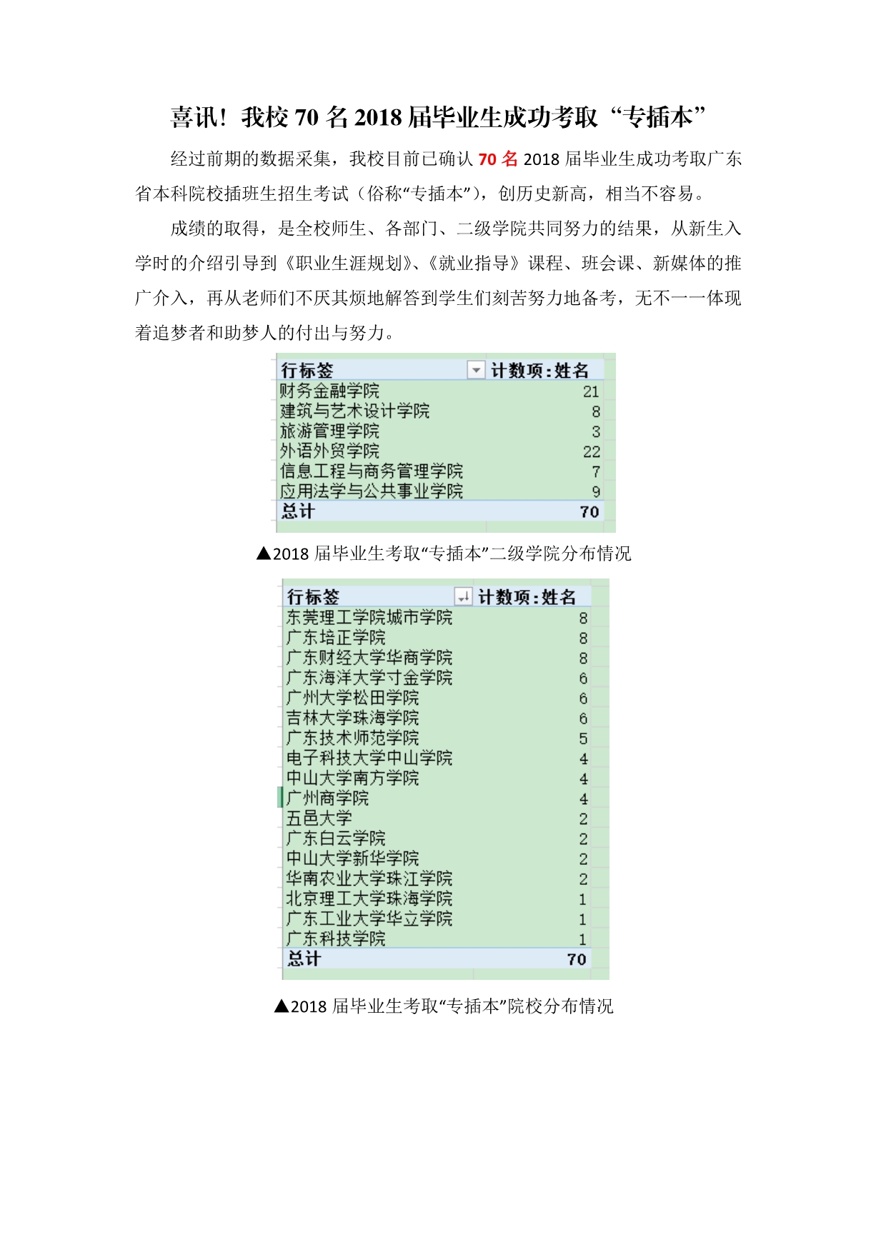 喜讯!我校70名2018届毕业生成功考取“专插本”