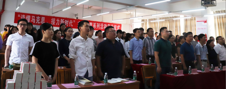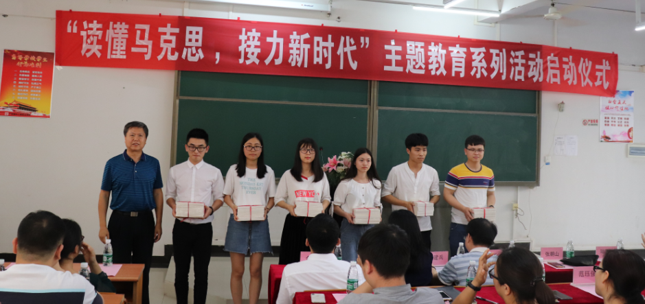 为深入学习贯彻习近平总书记在纪念马克思诞辰200周年大会上的重要讲话精神,引导学生积极学习和实践马克思主义,促进学生成长、成人、成才,成为社会主义事业的合格建设者和接班人。在学校党委统筹部署下,学生工作处开展以“读懂马克思,接力新时代”为主题的系列教育活动,内容包括:读马克思主义,理解信仰的内涵;谈马克思主义,感受信仰的力量;讲马克思主义,体会信仰的精华;摆马克思主义,展示信仰的魅力;传马克思主义,高扬信仰的旗帜;用马克思主义,实践信仰的行动。2018年5月16日下午,“读懂马克思,接力新时代”主题教育系列活动启动仪式在清远校区教学楼220隆重举行。参加启动仪式的领导和老师有副校长王满元、学生工作处处长张朝山、外语外贸学院党总支书记夏建兵、旅游管理学院副院长胡家夏、校团委书记余喜文、清远综合办副主任陆飞宇、图书馆副馆长范珏强、学生工作处副处长胡娟,学生工作处、校团委老师、清远校区全体辅导员,二级学院各班班长或团支书代表100多人。仪式由学生工作处处长张朝山主持。