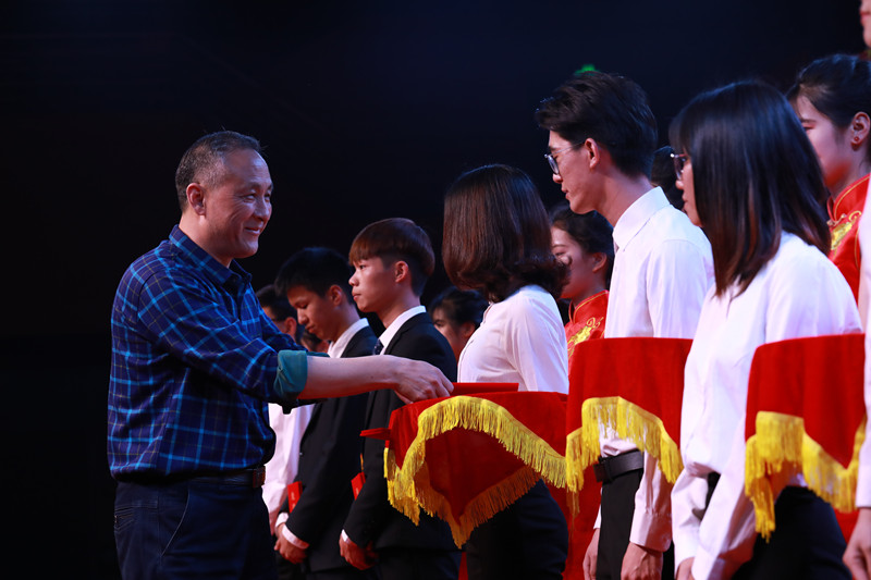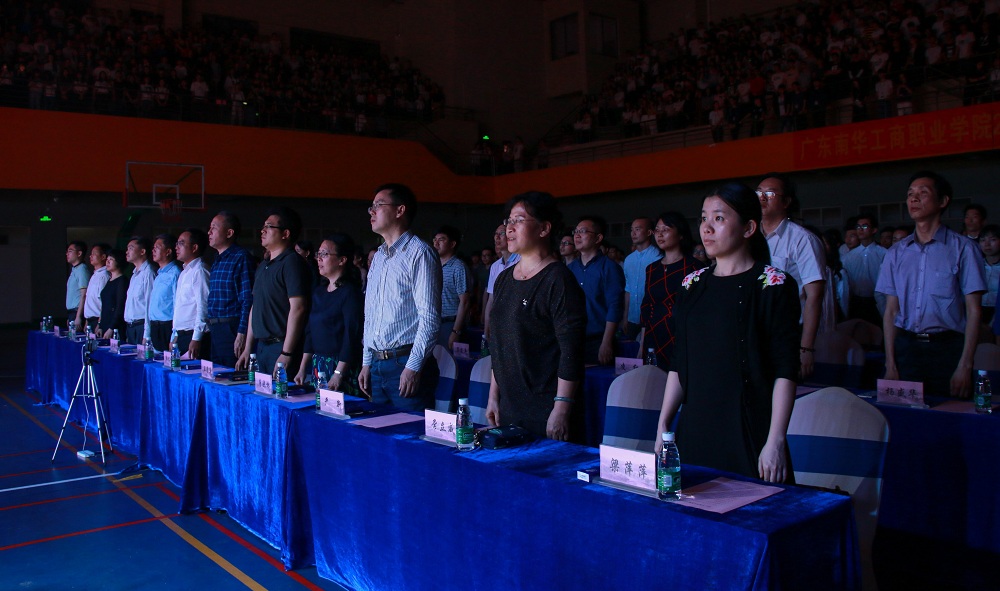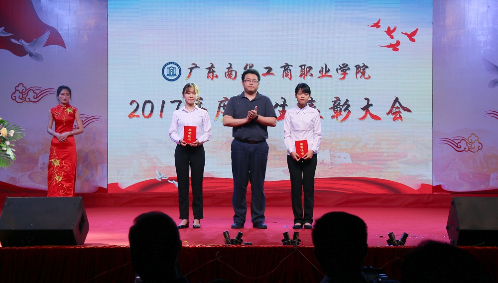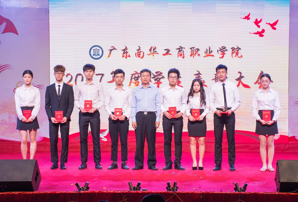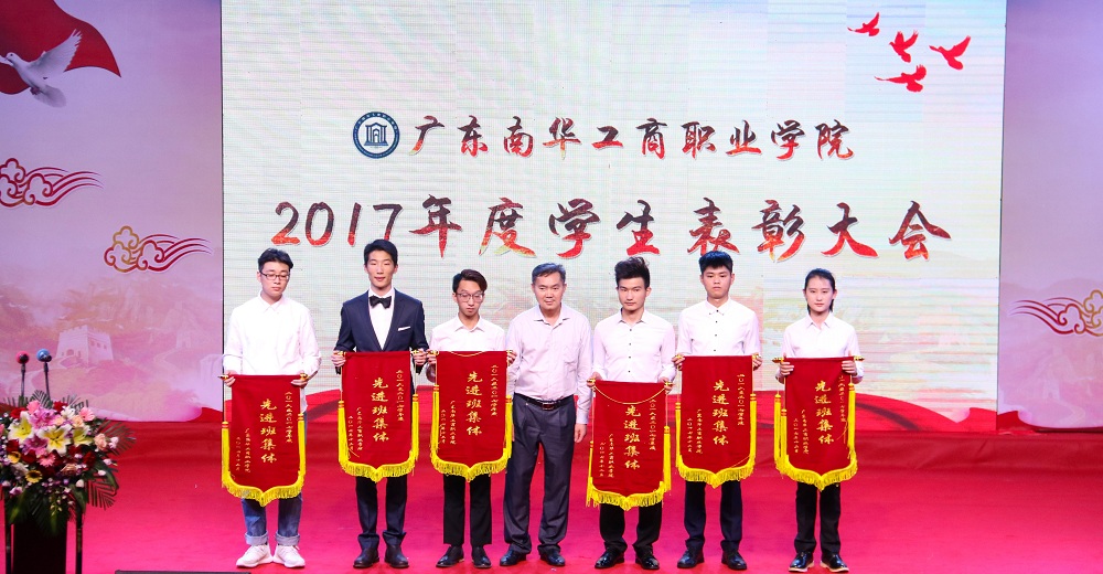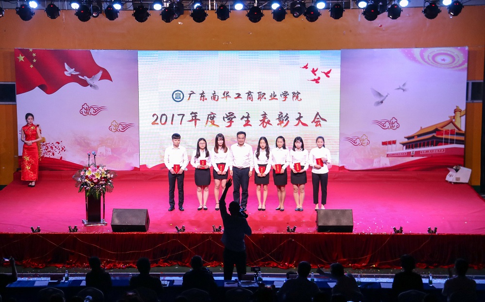 我校高举习近平新时代中国特色社会主义思想伟大旗帜,深入学习宣传贯彻党的十九大会议精神,勉励全体学子牢记使命,砥砺前行,勇于奋进,追求卓越,写好南华跨越式发展的“奋进之笔”。4月3日,我校在清远校区体育馆隆重举行2017年度学生表彰大会。学校党委委员、书记、校长马栩生,党委委员、副书记郭记中,党委委员、副校长王满元,党委委员、干校副校长、学校副校长王学真,党委委员、纪委书记韦秀华,副校长唐晓琳,党委委员、副校长严新,各部门、各二级学院领导,获奖学生代表等2200多人出席会议;会议由学生工作处处长、武装部部长张朝山主持。