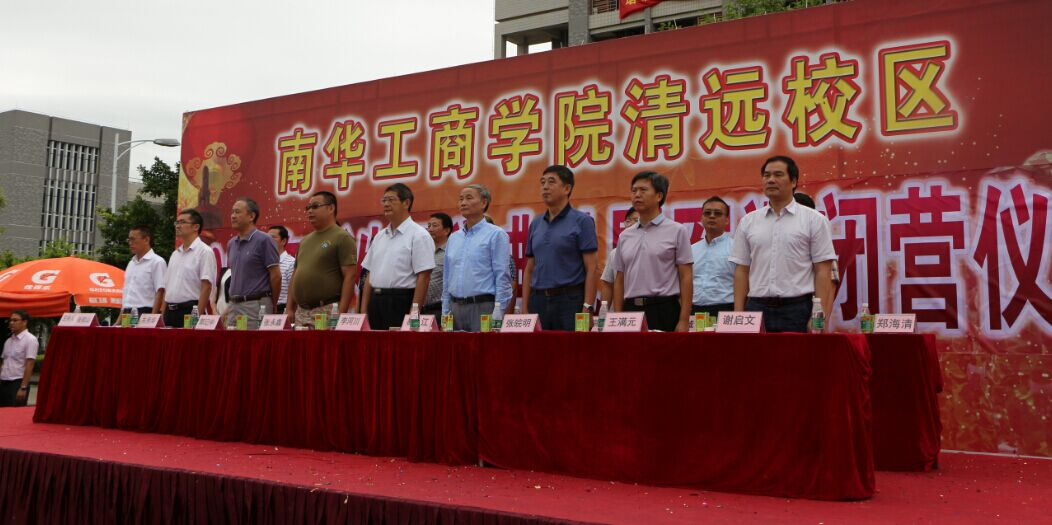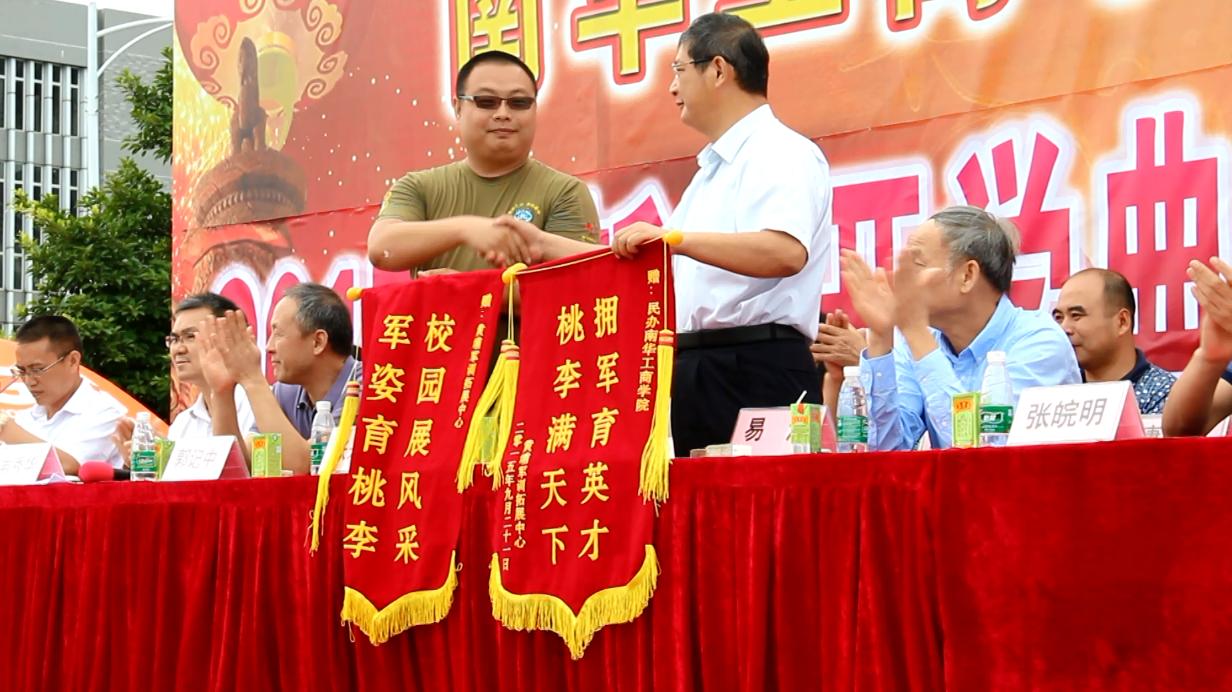 9月21日上午8∶30,南华工商学院2015年新生开学典礼暨军训闭营仪式在清远校区足球场上隆重举行。学院党委李河川书记、学院易江院长、承训单位黄埔军训拓展中心办公室张永鑫主任、学院党委张皖明副书记、学院郭记中副院长、学院王满元副院长,院长助理、清远校区综合办韦秀华主任、各二级学院(系)和职能部门领导、清远校区全体辅导员及2015级学生参加了本次典礼。开学典礼暨军训闭营仪式由学生处处长、武装部部长张朝山主持。