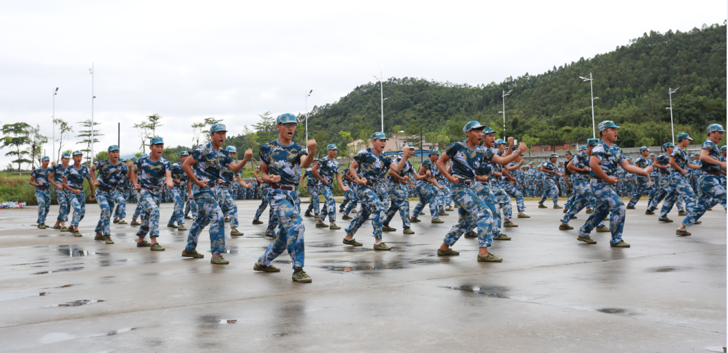 在雄壮威武、节奏铿锵的《中国人民解放军进行曲》中,军训汇报表演正式开始。受阅方阵和表演方阵踏着统一而又矫健的步伐从主席台上一一走过,他们军姿挺拔,士气高昂,拼搏和汗水是他们对青春最好的诠释。尤其是会操表演环节中,军体拳的气势如虹、擒拿拳的刚劲有力,匕首操的以柔克刚,惊艳全场,赢得了领导嘉宾和在场师生的阵阵掌声和喝彩。