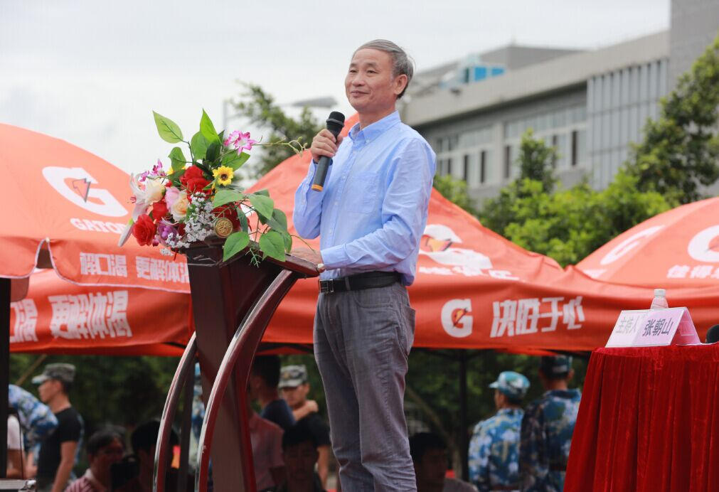 大会第三项议程:学院院长易江博士讲话。易院长首先向承训单位领导和全体教官表示衷心的感谢,向坚持完成了军训任务的2015级新生表示热烈的祝贺。随后,易院长从大学——人生新的转折点出发,向全体新生推荐了“三张金卡”:一是爱学习,勤追问;二是做事要方,做人要实;三是与时俱进,不断探索创新,并针对性的提出了“三张密码”。他衷心希望新生在接下来的三年中,践行学院校训,让人生更上一层楼。易院长富含哲理、深入浅出的讲话获得了现场师生的阵阵掌声。